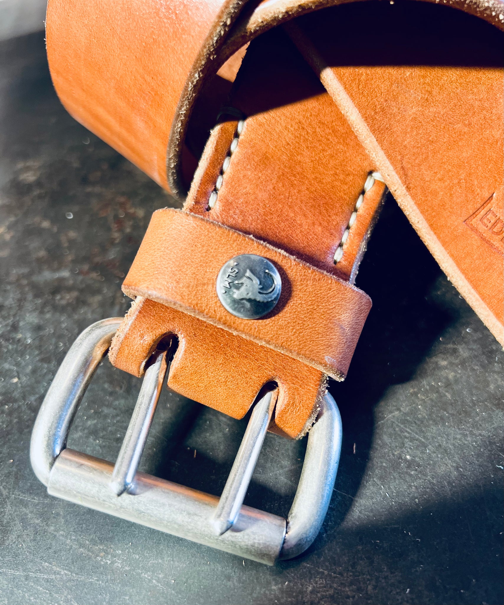 Gürtelriemen gefertigt aus Leder der namhaften Gerberei "WICKETT & CRAIG", aus Toronto bzw. Pennsylvania. Dieser Traditionsbetrieb gerbt bereits seit 1867 mit pflanzlicher Gerbung.